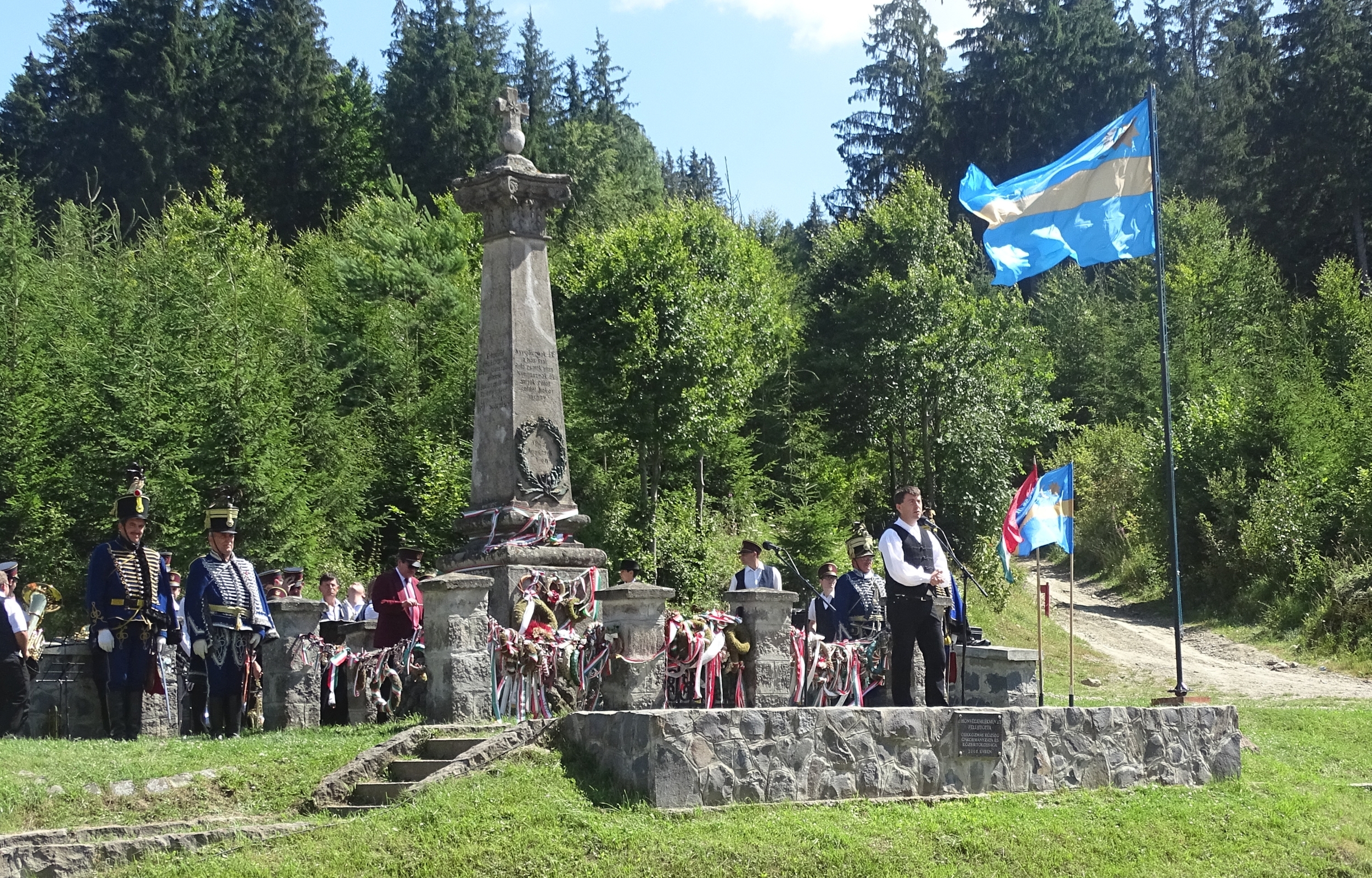 – 1849 augusztus elseje az a nap volt, amely arról szól mit jelent a szabadság, mit jelent a szabadságért küzdeni, mit jelent a hősiesség és a bajtársiasság. De szól arról is mit jelent az elnyomás, az idegen hatalmak támadása – mondta elöljáróban. Felhívta a figyelmet arra, hogy az emlékoszlopon egyetlen név sem szerepel.
